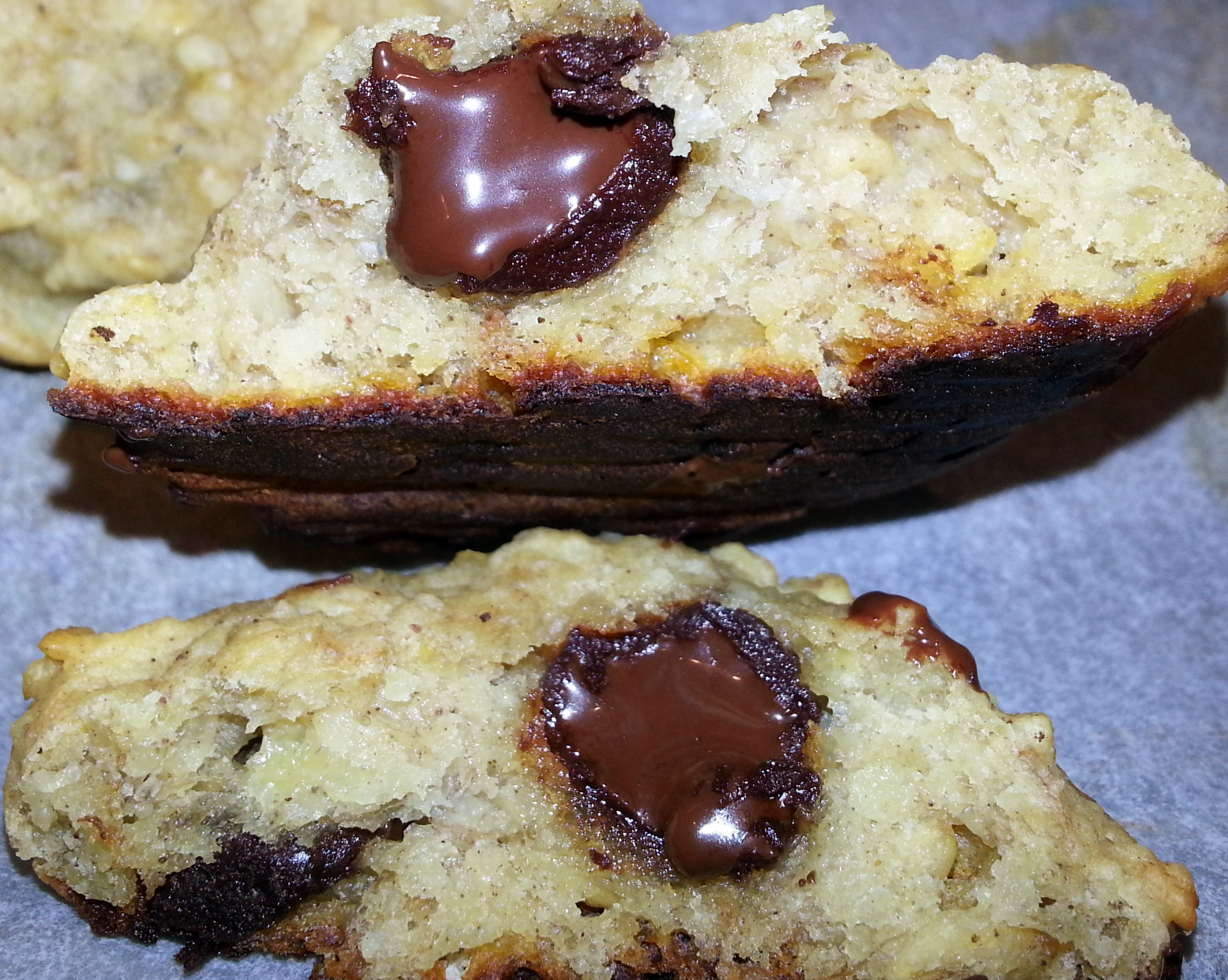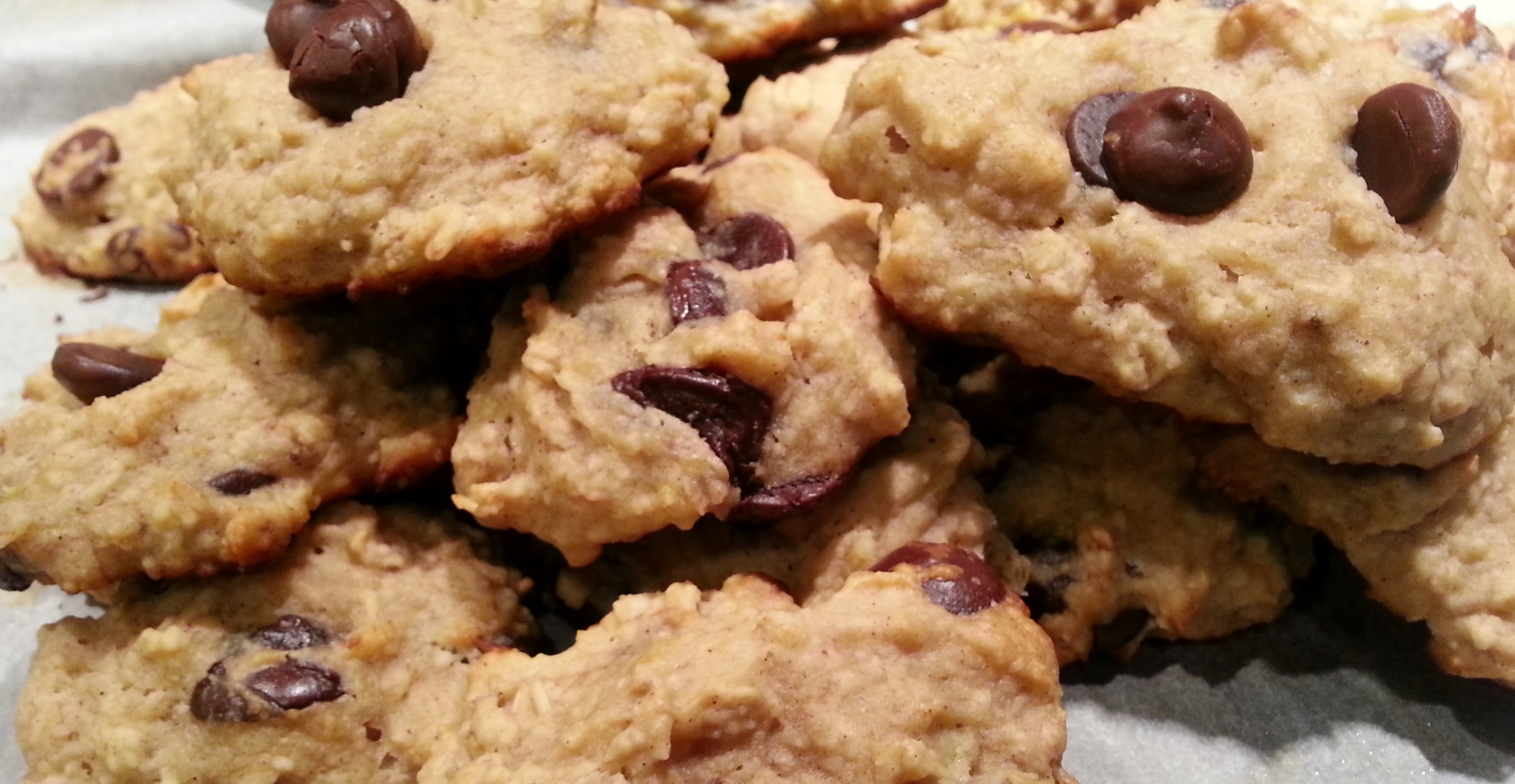 These are my best banana cookies so far, in my opinion. Taste tester #1 fully endorses them and says the amount of cinnamon is ideal. Taste tester #2 is away at school, so I don’t know what she would say — she doesn’t like bananas, but I think mixed with the peanut butter you can’t really taste the separate banana taste without looking for it; however, she often claims to taste bananas when I can’t. I’m gonna guess that she would give a thumbs down on this recipe, but if I dropped one banana and increased the peanut butter, her thumbs would go up. Taste tester #3 is not allowed to sample these because chocolate is poisonous to dogs, but I’m sure she would lap it up if I let her.