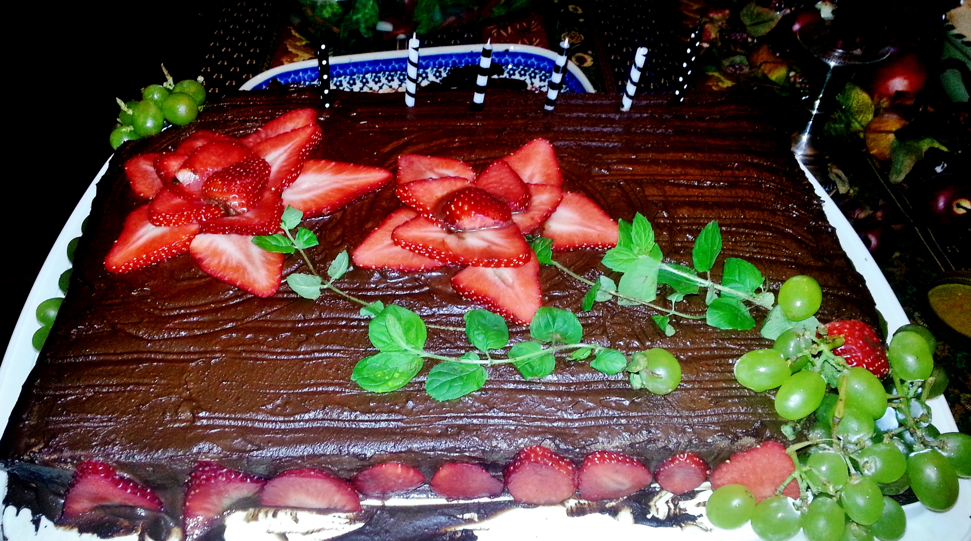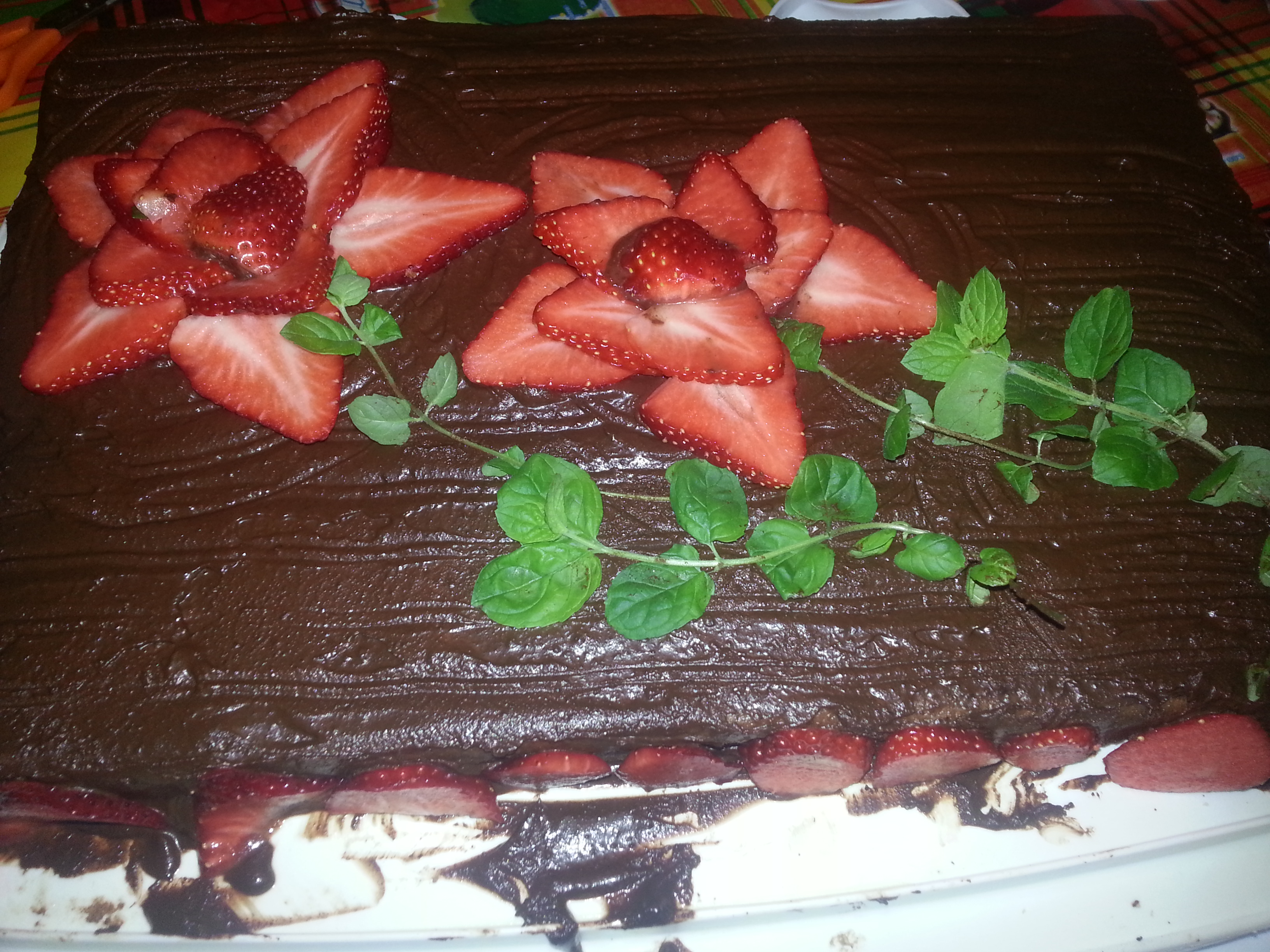 - Make the ganache in the morning and decorate as desired (I used strawberries and fresh mint).